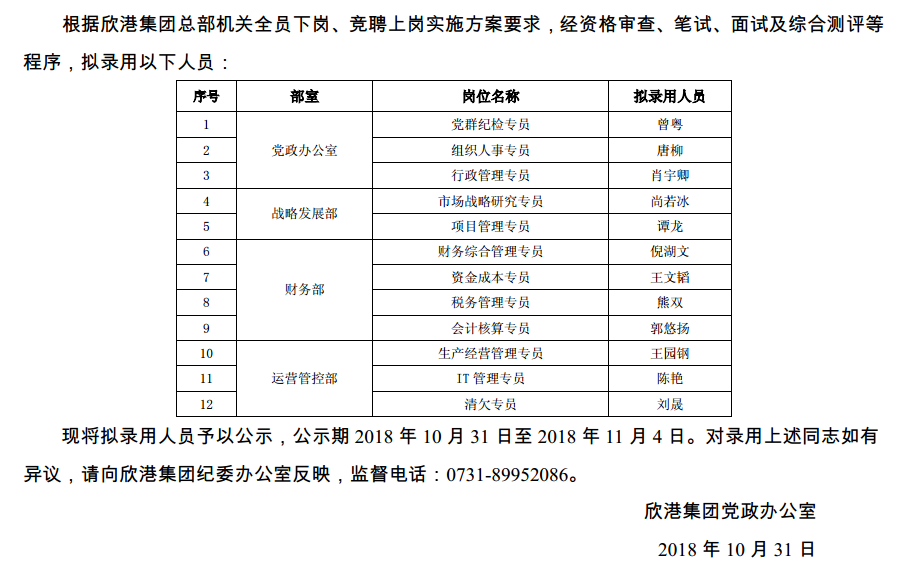 當前位置:首頁 > 資訊中心 > 欣港集團總部機關管理人員公開招聘結果公示-一般員工