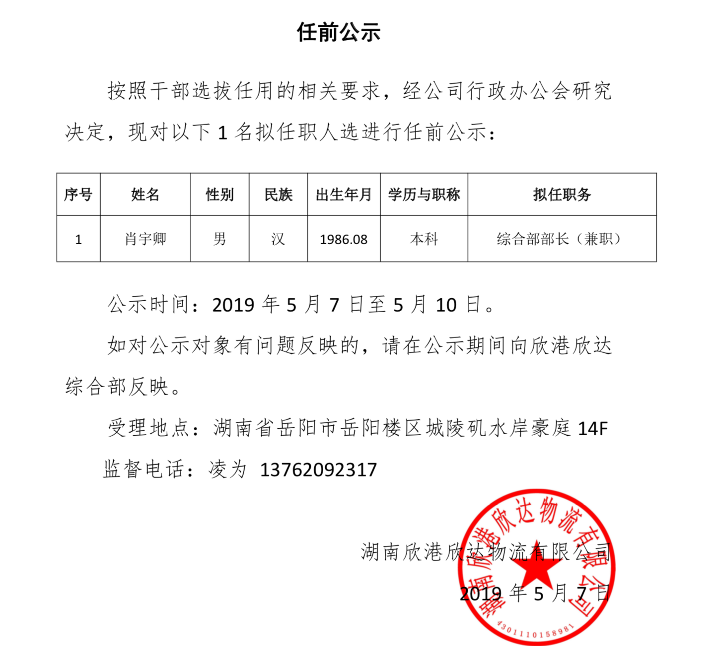 上一篇:岳陽欣港任前公示-20190507